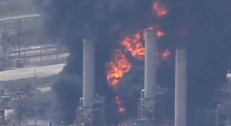 CDMX.- Un fuerte incendio se registró este viernes  en la zona de refinerías de Deer Park, complejo donde se encuentra la planta comprada por Pemex hace unos meses.