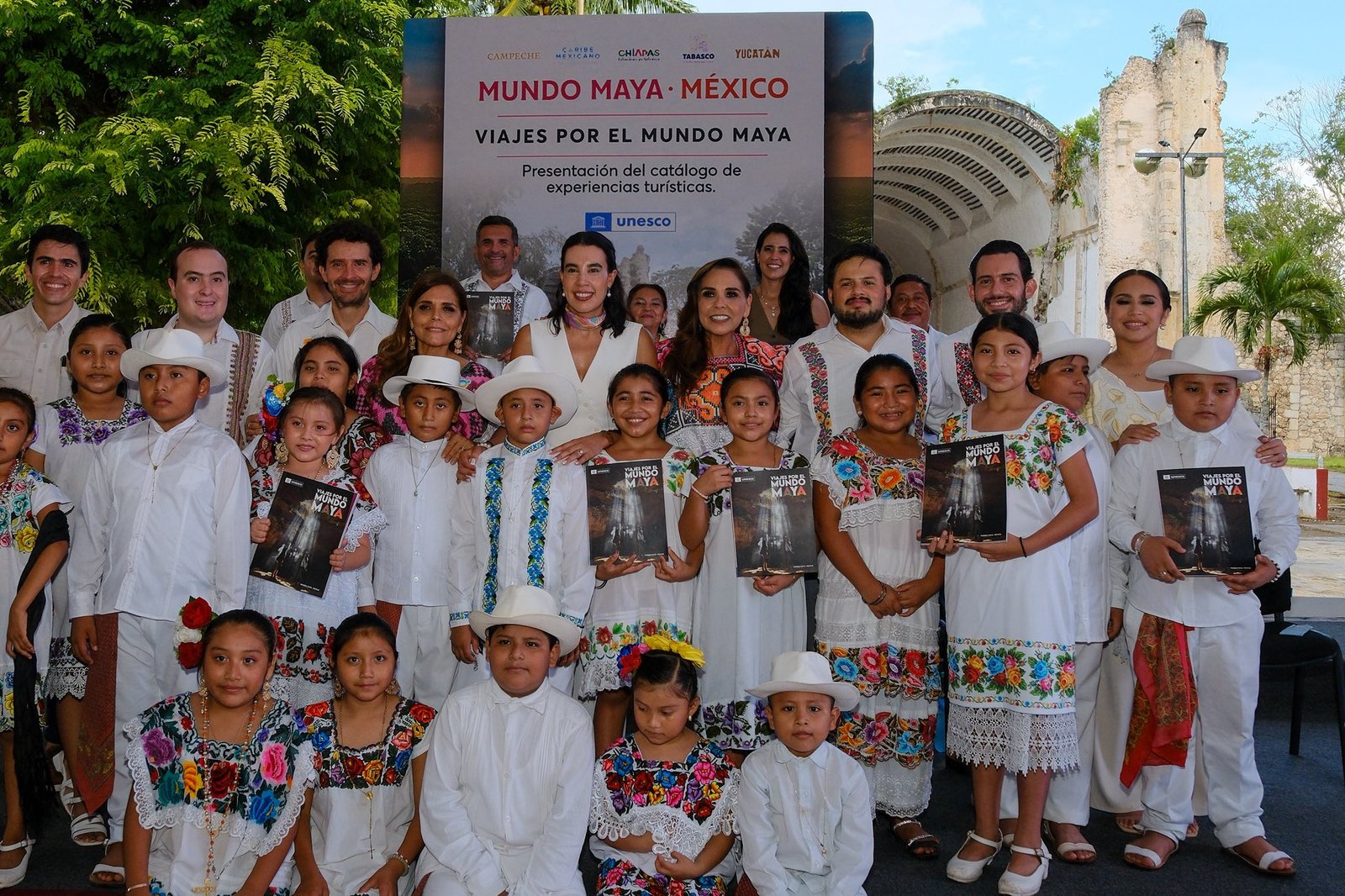 Teniendo como fondo el Templo del Niño Jesús, impresionante y fiel testigo de la histórica Guerra de Castas en el corazón de Felipe Carrillo Puerto, la gobernadora Mara Lezama presentó este Catálogo que refleja nuestra historia, nuestra cultura y nuestra grandeza como pueblo Maya, pero también el trabajo coordinado con SECTUR, FONATUR, de la mano con la UNESCO que por primera vez respalda una iniciativa de ese nivel.